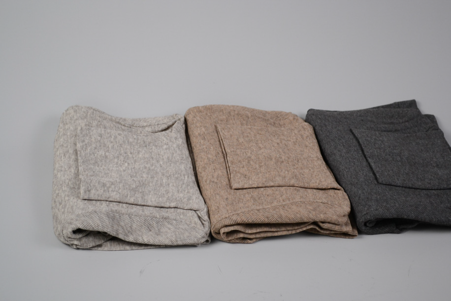糸はオーガニックのスーピマコットンをベースにヤク(ウシ科)の糸20%をミックスしています。肌あたりが良く、薄く、暖かく、高い保湿性(=スーピマコットンの作用)と強度、通気性(=ヤクの作用)を兼ね備えています。