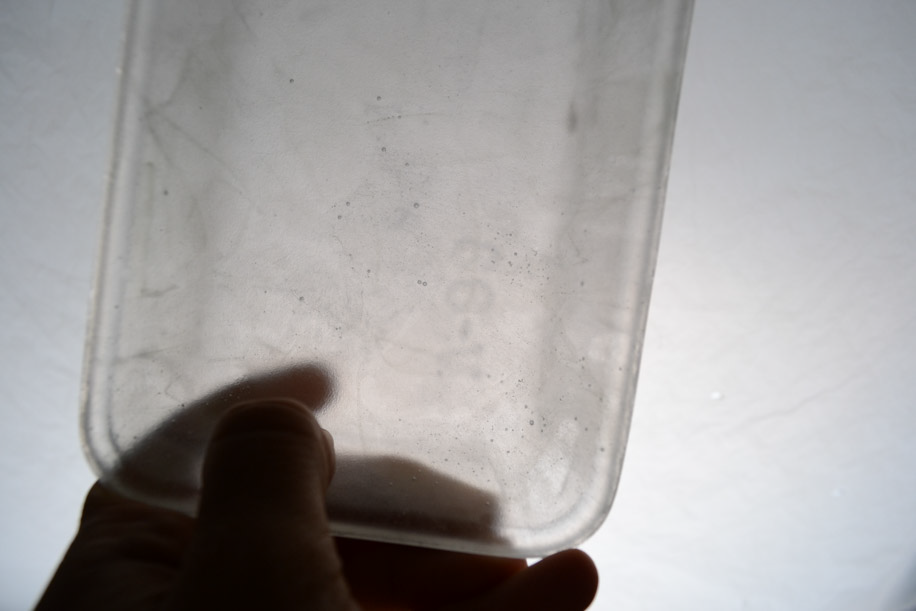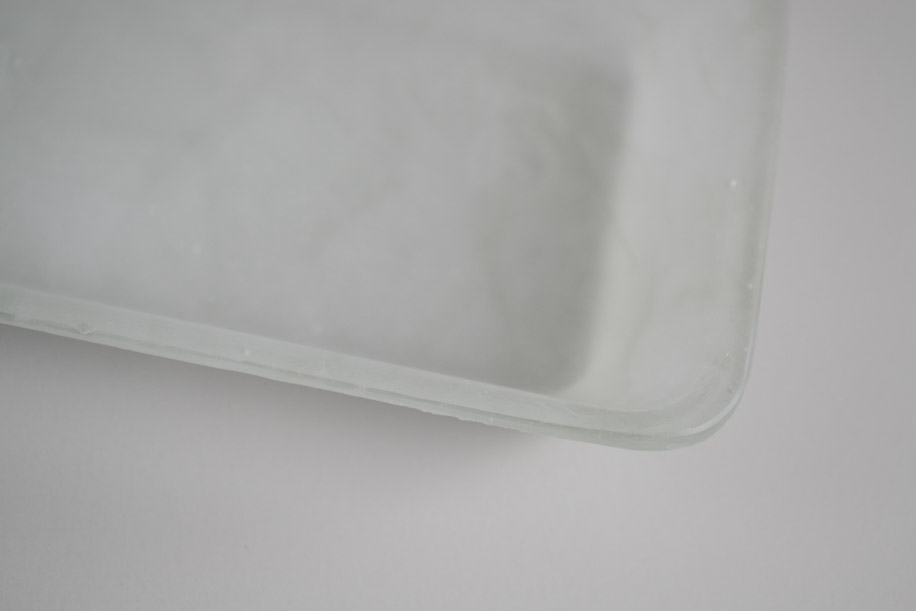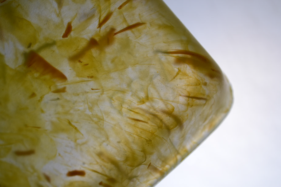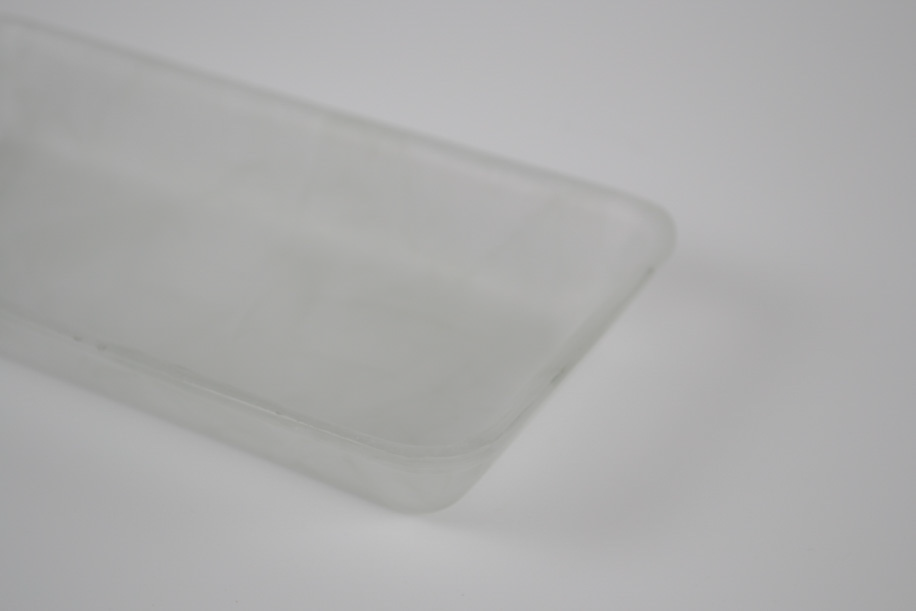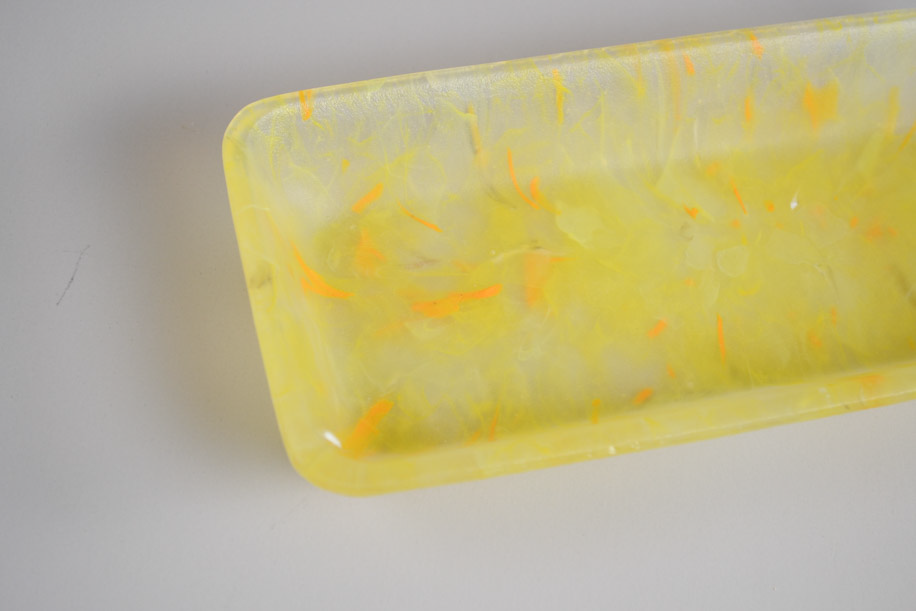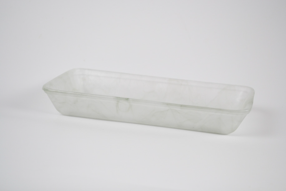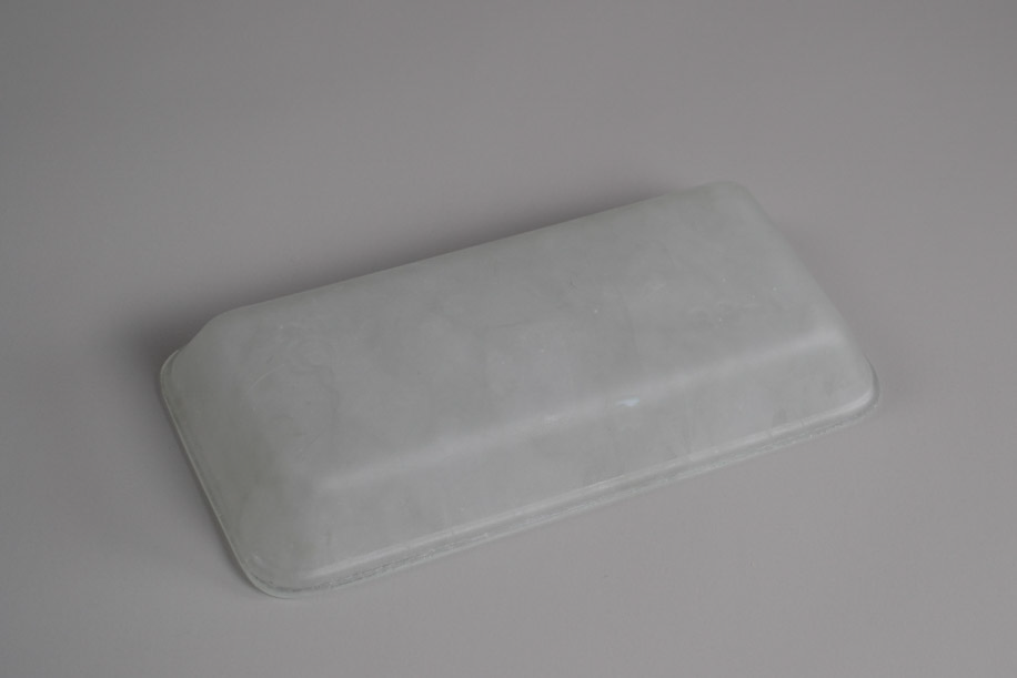 こちらは使い捨ての食品トレイをトレースした作品で、自身の失敗した作品を溶かし直し、リサイクルした「捨てられない食品トレイ」です。