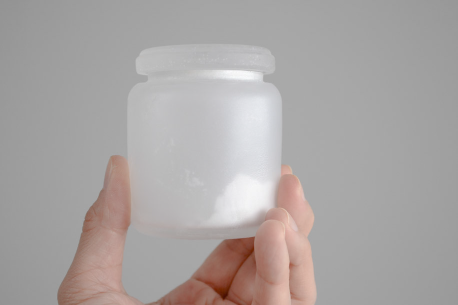 白粉を入れた状態で焼いています。蓋は開かず、一体化されています。
