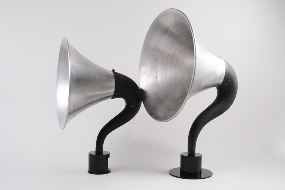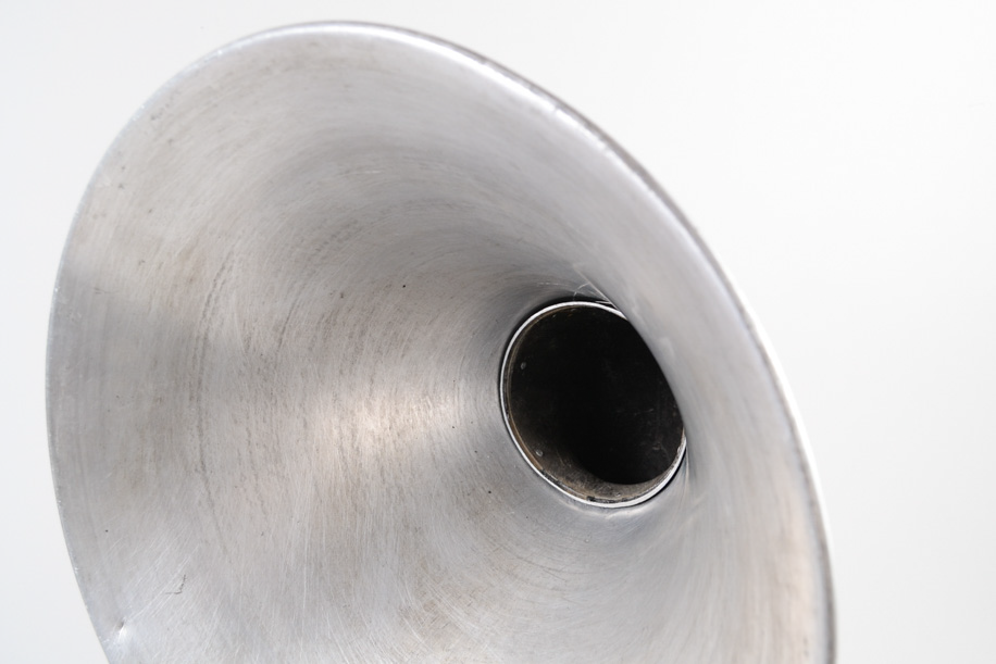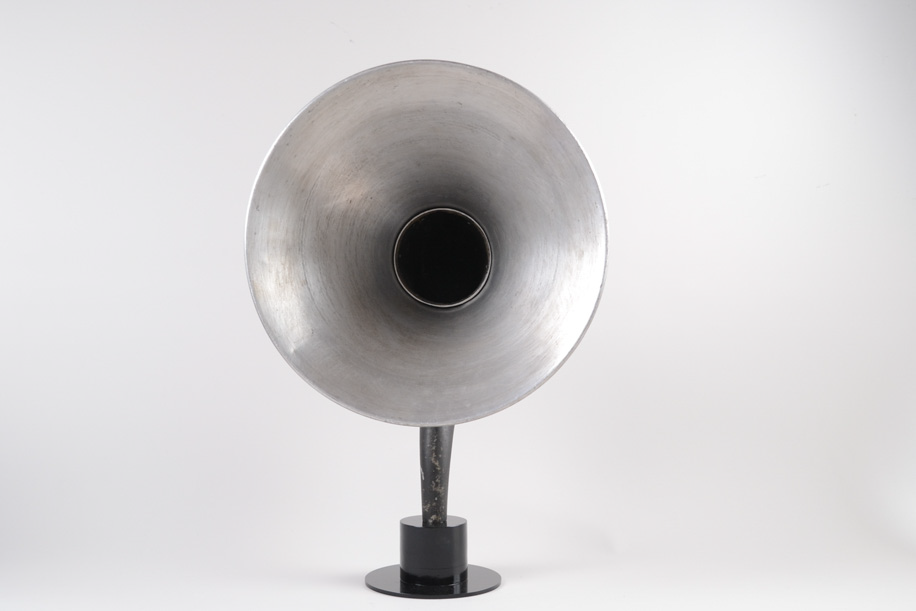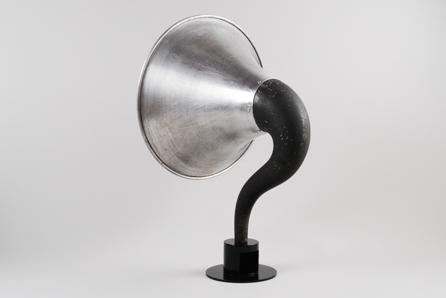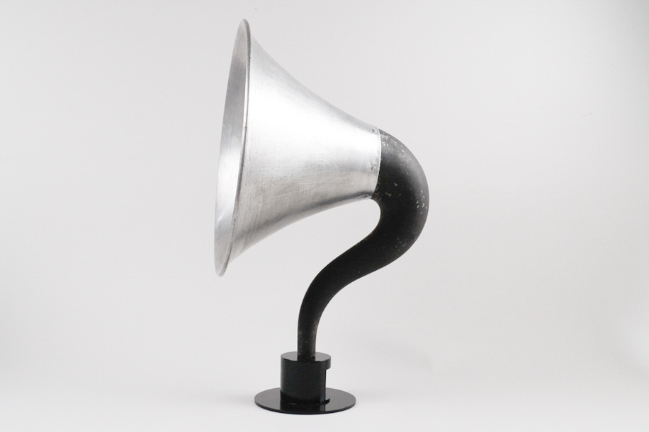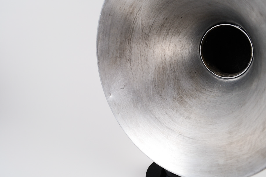 戦前の真空管ラジオに使われていたホルンスピーカーを再利用し、現代のかたちにしたスピーカー。アルミ、鉄で作られており意外と軽く、持ち運びもし易いです。棚に置いたり、床に置いたりと、どこに設置してもその場の雰囲気を変えてくれます。