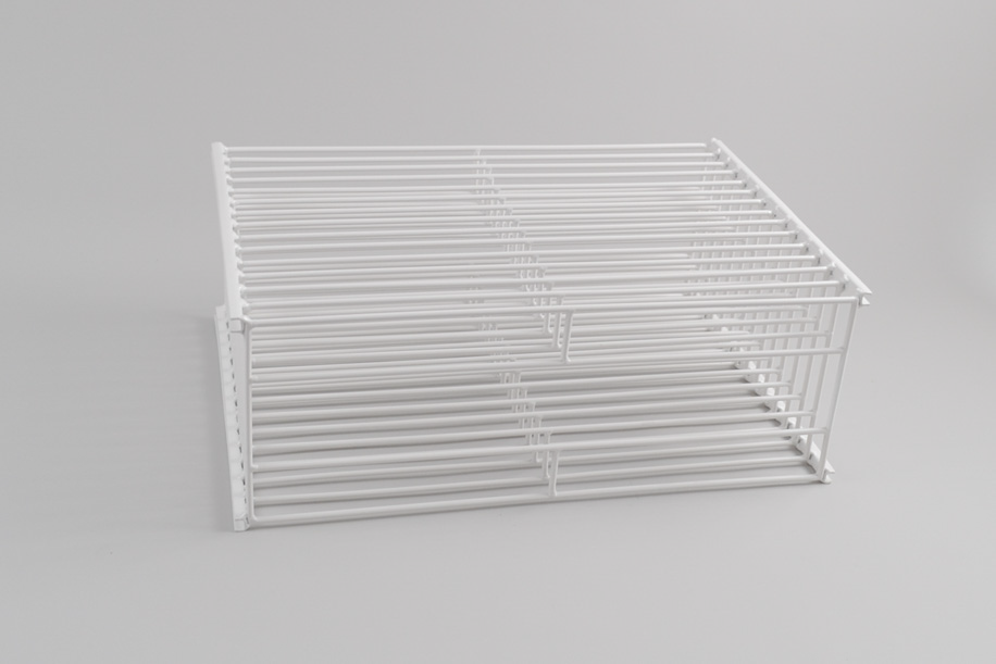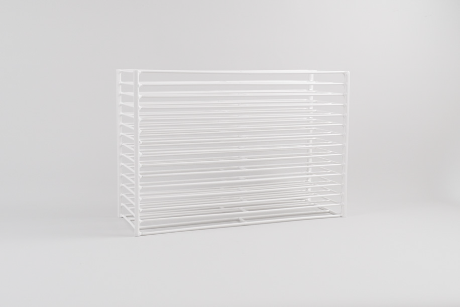焼きものの窯道具。皿立てた状態で窯に入れる時に使用していたもの。芯は鉄ですが、ペイントして再生。ポストカードやお皿を立てられるようなスタンドとして利用できます。また、構造的に強度があるため、2つ利用して展示台の脚にすることも出来ます。
