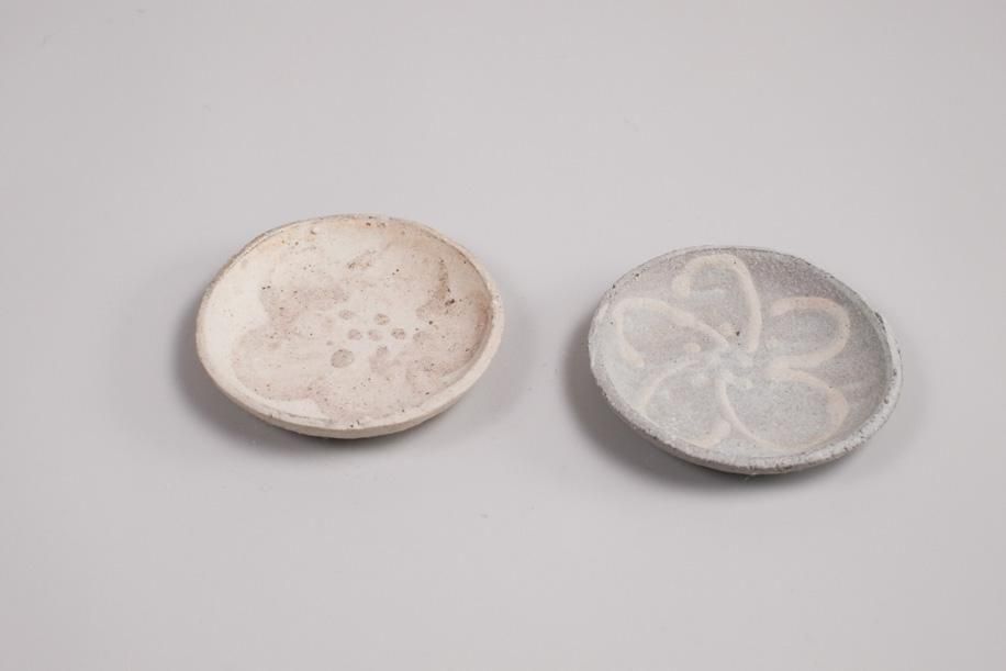 一番最初のきっかけになった小さな丸いお皿ですが、変化していくことが楽しいのでこのまま遊び続けてもらうことにしました。こちらにご紹介しているのは2025年の秋のテストピースです。ここからヒントを得たものが、いつか別のかたちとなるでしょう。