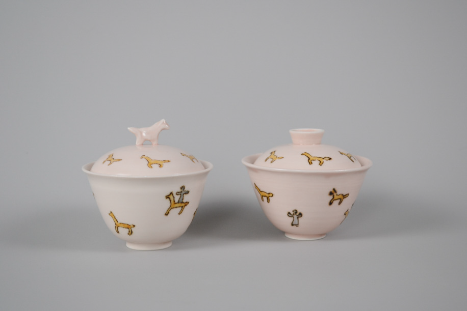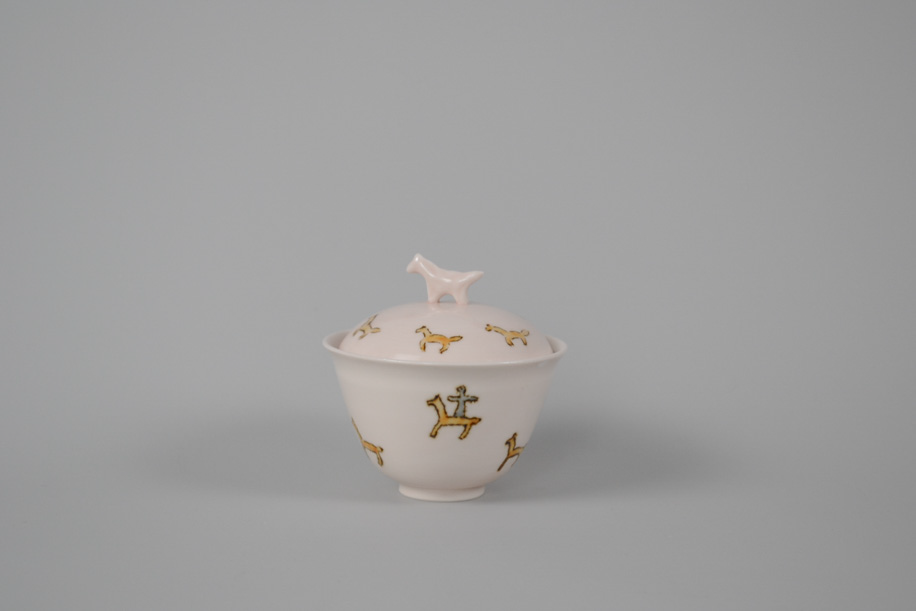 すずきあきこ 蓋碗(丙午と古代人)+馬のせ