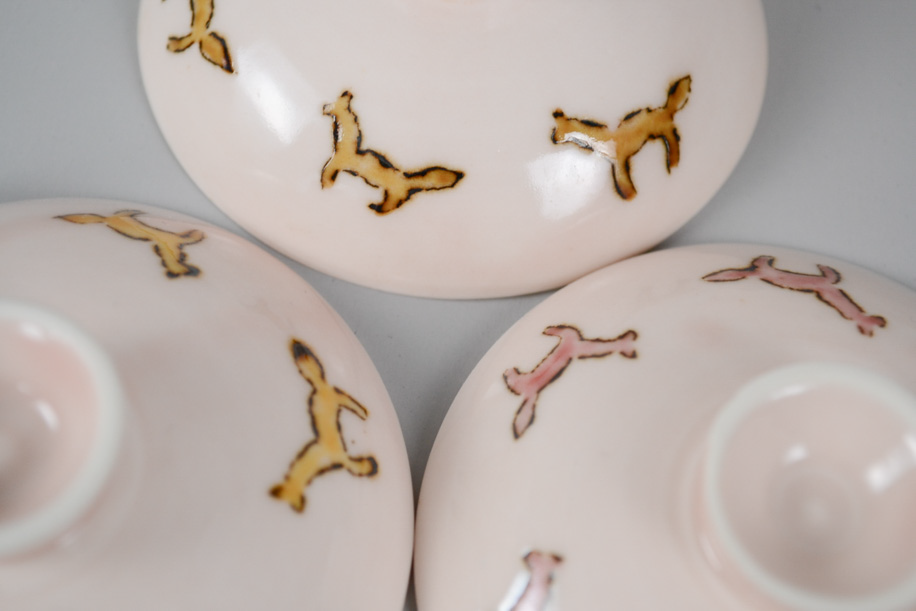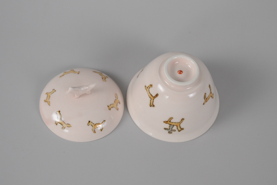 まるですべてが型物のように、薄く、硬く焼いてあります。中国の磁器に習った薄い白磁のフォルムと現代的な絵付けの掛け合わせがすごい。蓋がくるっと回ることもなく淹れやすいです。