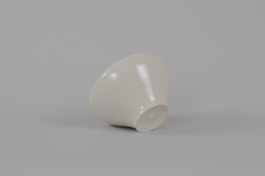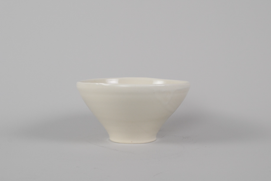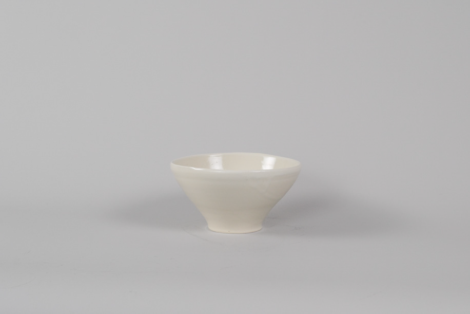 蹴ろくろで形を作り、薪窯で焼かれる中本さんの白磁には何層もの白の肌がある。まず色調が違うし、薪の灰でカサカサしたり、ツヤツヤしたり、ピンホールが出来たり、歪んだり。目新しさを追求すると、分かりやすく色や形の上書きを求めがちであるが、この白一本で無数のレイヤーを表すことだって出来る。李朝の白磁のような柔和な白の中には潔癖なほどの慎ましさもある。これは白磁で土器を表現する現代の雑器。