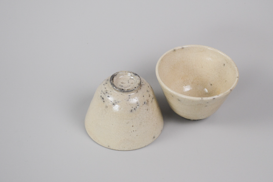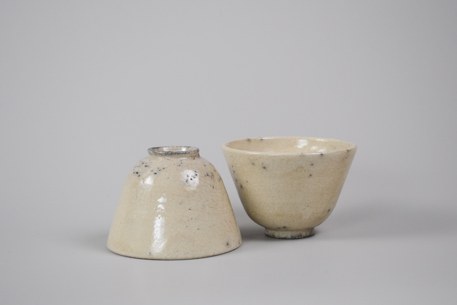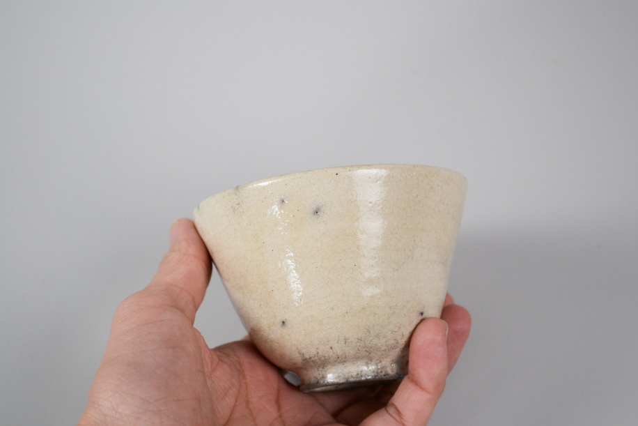 使用する灯油窯が小さいことからカップや豆皿などが多く、どれも生活に身近な愛らしい小作品。楽焼は窯から出してすぐ急冷しますが、その際に新聞紙を使うことから黒く貫入が入ります。一点一点違うことは前提として、ここでは同じようなサイズ感、色調のものをご紹介いたします。アソートになりますので、ご了承のうえお申し込みください。