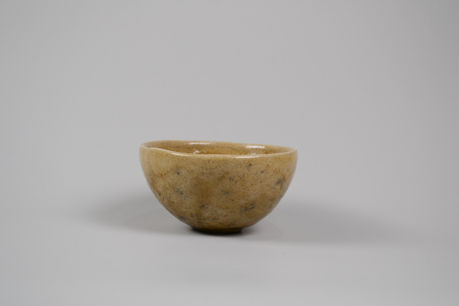 こちらはタタラ成形の碗。粘土の塊を手で叩き、伸ばしたものを型の上に被せてかたちを作り、仕上げています。轆轤のボウルよりも厚みがあり、手捻りのような佇まい。一点一点向き合って制作しており、手に抱いた時に、よりずっしりと存在感を感じられる作品です。