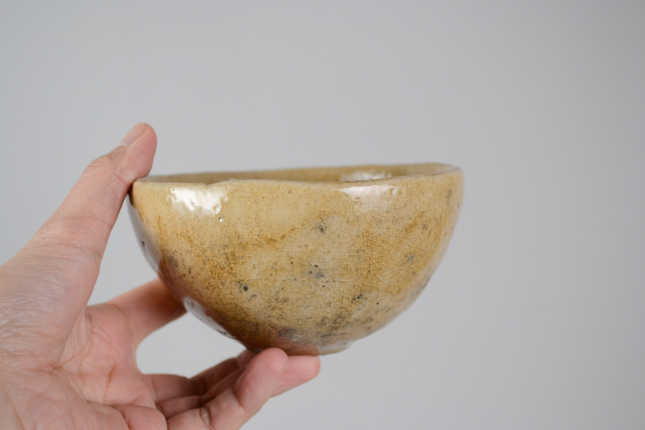 どれ一つとして同じものはない、楽焼の作品。低下度で焼いた土に、90%はガラス質だという釉薬。器でありながら、柔らかいものを硬くコーディングしたような、素材の塊を抱いているような不思議な気持ちになります。