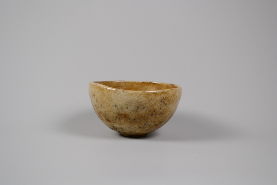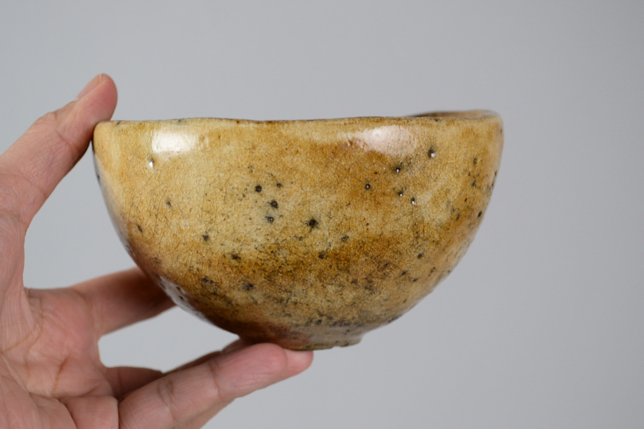 どれ一つとして同じものはない、楽焼の作品。低下度で焼いた土に、90%はガラス質だという釉薬。器でありながら、柔らかいものを硬くコーディングしたような、素材の塊を抱いているような不思議な気持ちになります。