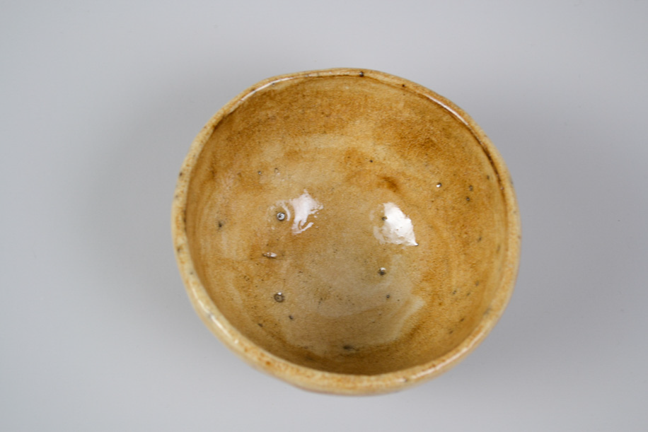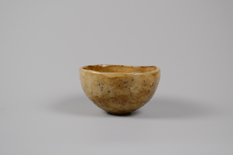 こちらはタタラ成形の碗。粘土の塊を手で叩き、伸ばしたものを型の上に被せてかたちを作り、仕上げています。轆轤のボウルよりも厚みがあり、手捻りのような佇まい。一点一点向き合って制作しており、手に抱いた時に、よりずっしりと存在感を感じられる作品です。