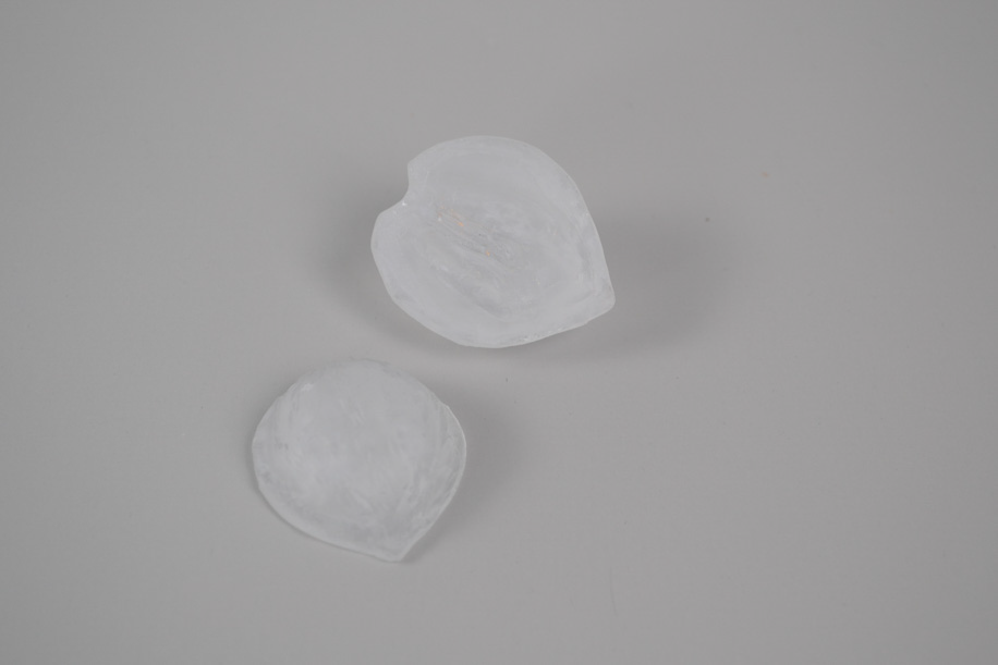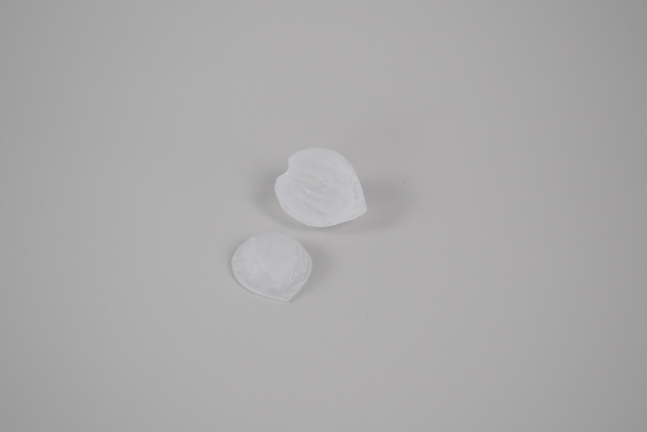 キルンワークで制作したパート・ド・ヴェールの作品です。制作した型の中でガラスを溶かして焼く技法のため、型を壊して作品を取り出します。