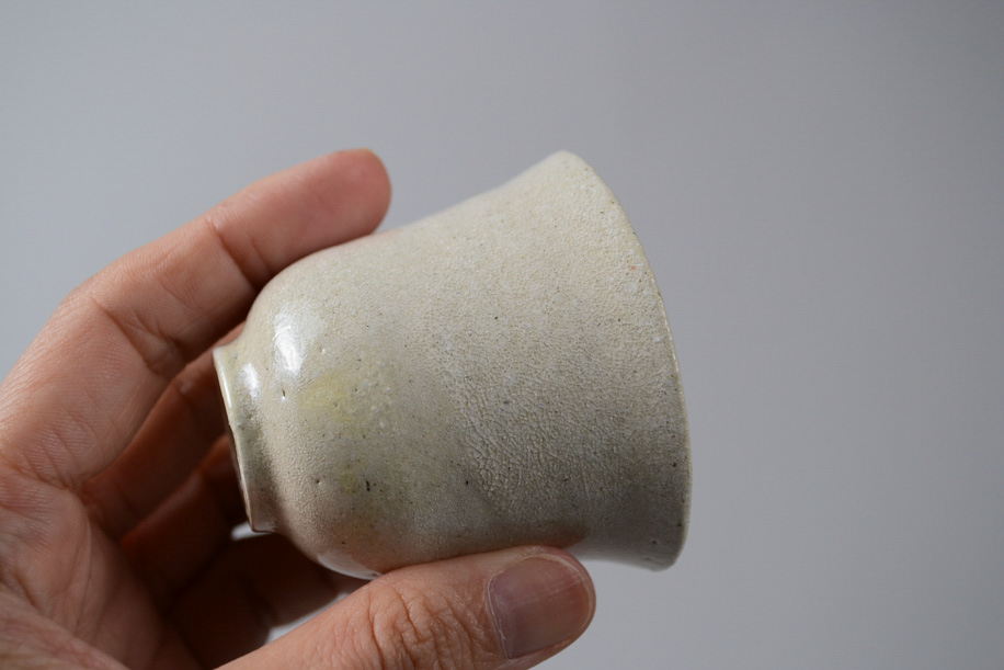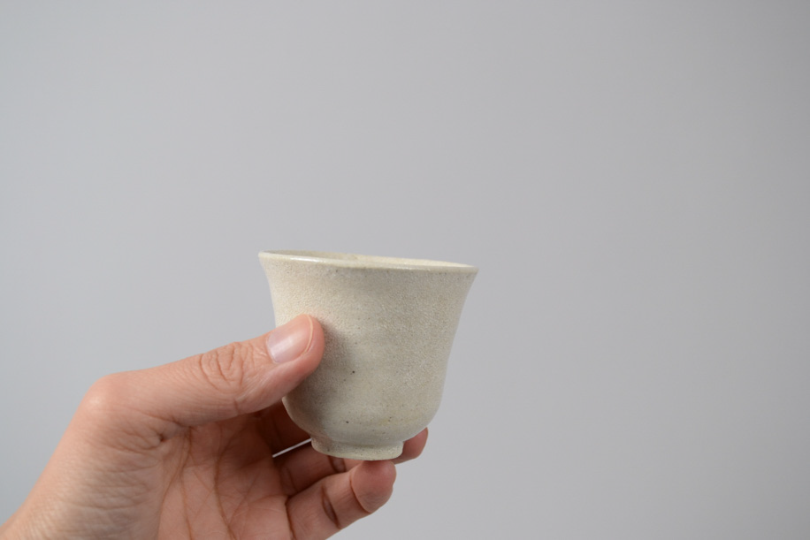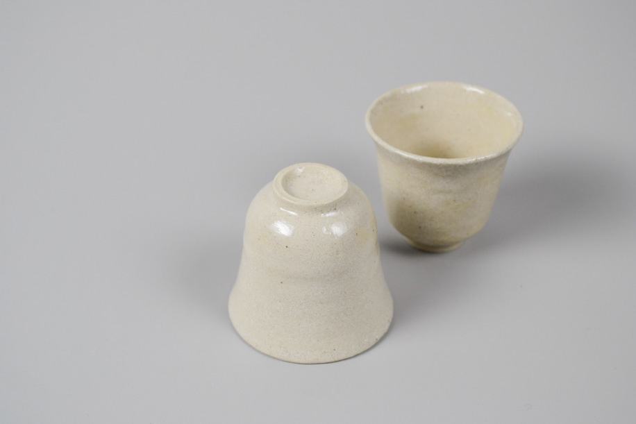 使用する灯油窯が小さいことからカップや豆皿などが多く、どれも生活に身近な愛らしい小作品。楽焼は窯から出してすぐ急冷しますが、この蓋碗は水に浸して冷やすため、貫入は入っていませんが使用すると貫入が入り表面が締まっていきます。特に土ものの蓋碗には烏龍茶や岩茶などがおすすめですので、馴染ませていってください。