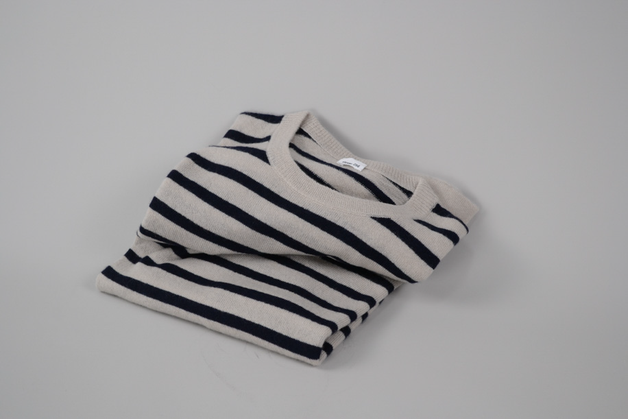 eleven 2nd - 【Men's】 Round neck Border(cashmere・oyster / dk.navy)