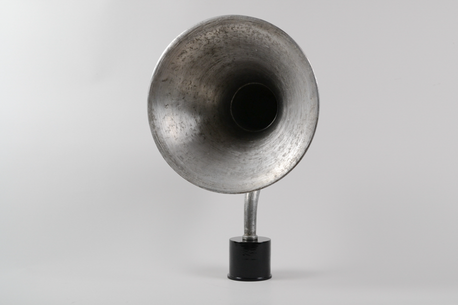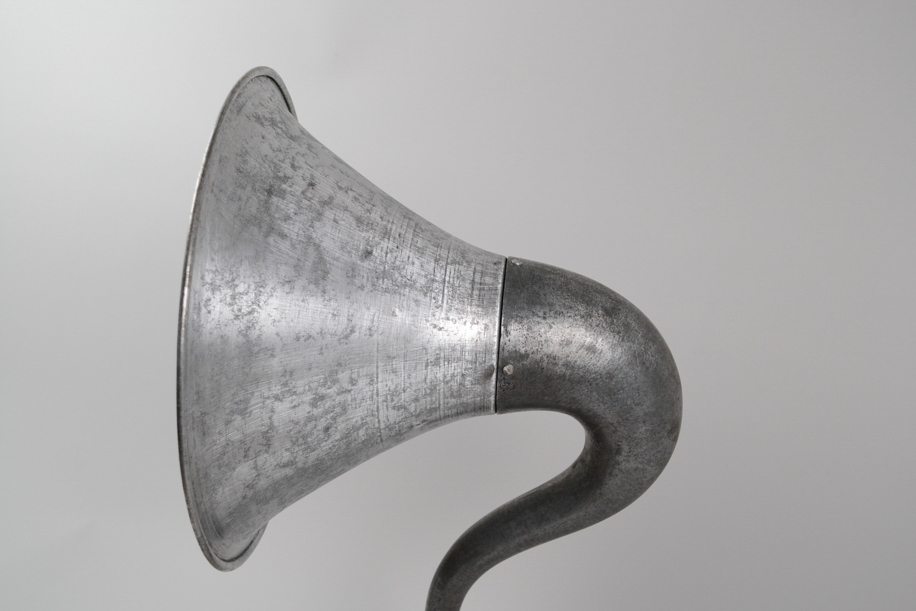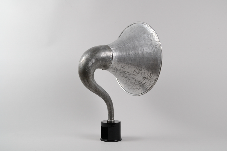 戦前の真空管ラジオに使われていたホルンスピーカーを再利用し、現代のかたちにしたスピーカー。アルミ、鉄で作られており意外と軽く、持ち運びもし易いです。棚に置いたり、床に置いたりと、どこに設置してもその場の雰囲気を変えてくれます。
