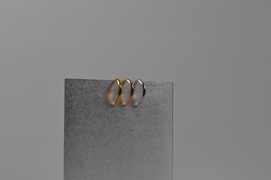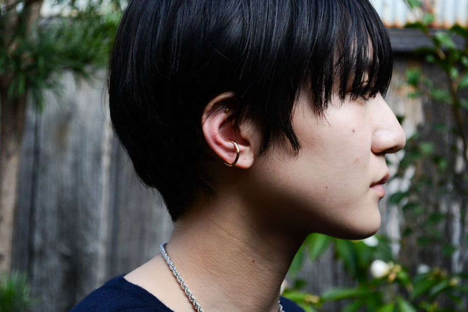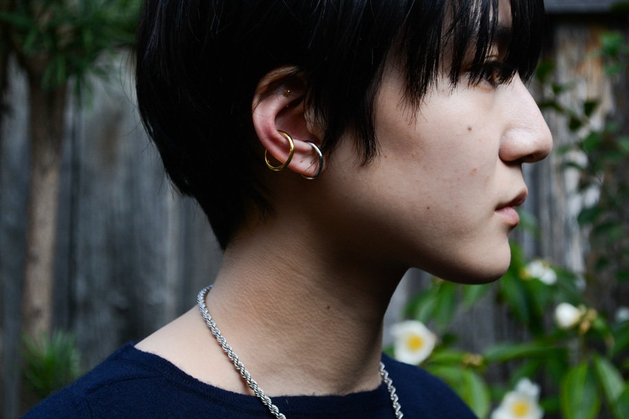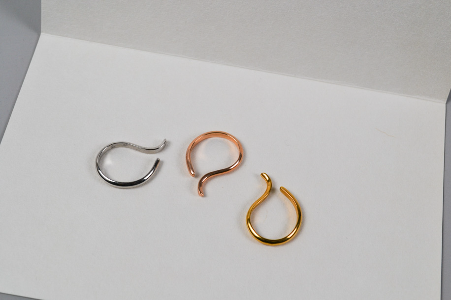 耳に寄り添うイヤーカフ。落下の心配や長時間使用することによる痛み、圧迫感をほとんど感じることなく、着用出来ます。かたちをしっかりと強く守るために芯は真鍮で、3つのカラーのメッキ仕上げをご用意。