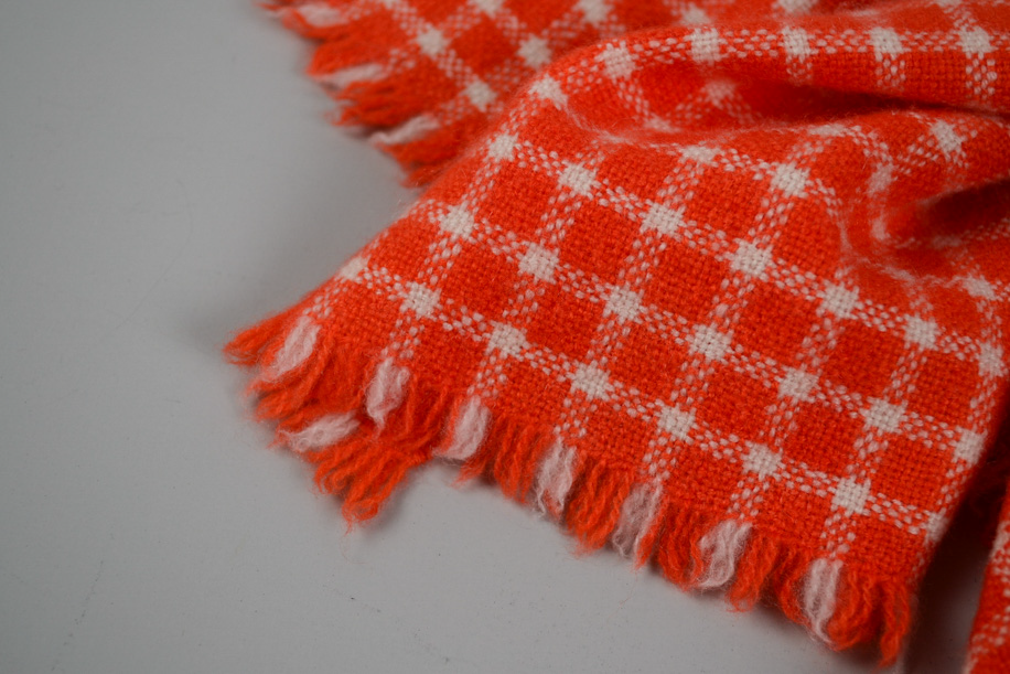 大滝郁美 - Cashmere Small muffler (check ・ red x white)