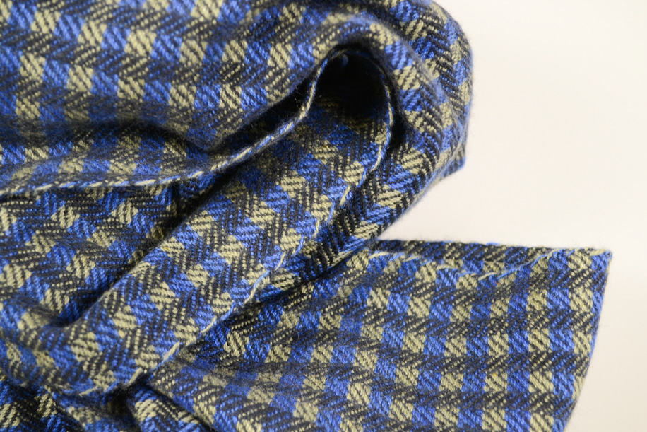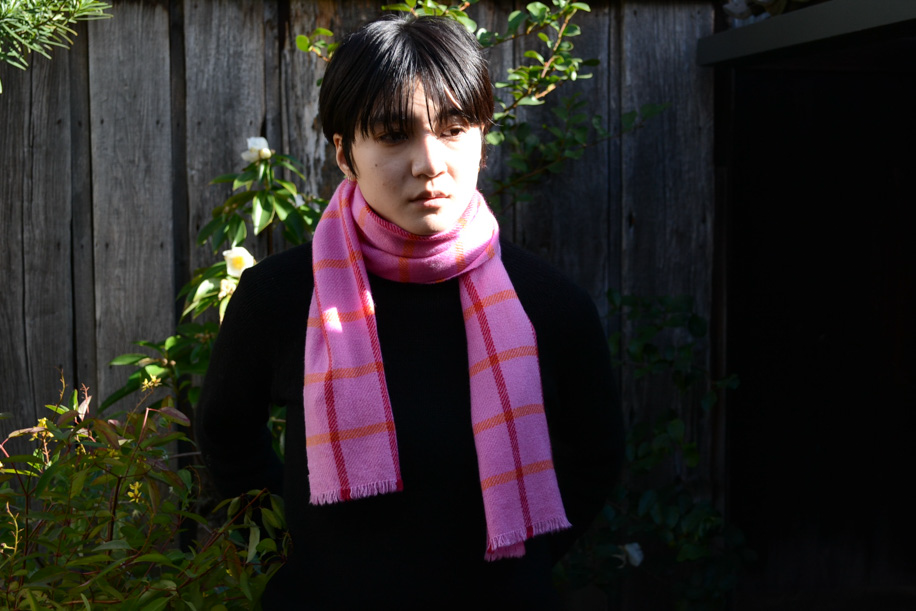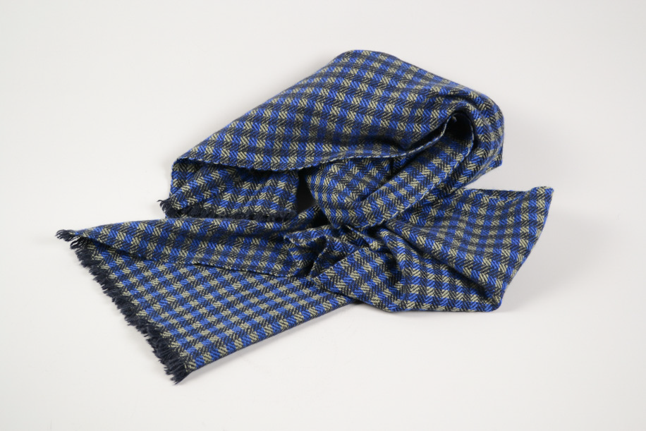紳士用サイズを意識した小さめのマフラー。軽くてコンパクトですが、カシミヤであれば十分暖かいことをしっかり感じられる1枚です。首元にくるっと巻くだけで、暖かい、軽い、柔らかいという幸せ尽くし。お部屋の中や仕事中に邪魔にならないサイズを考えて織っていただきました。また、もっともっとボリュームが欲しい時は、お手持ちの無地のマフラーなどと二枚使いで重ねて巻くのも良いでしょう。