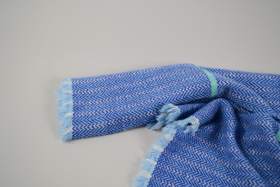 大滝郁美 - Cashmere Small muffler(herringbone ・light blue)