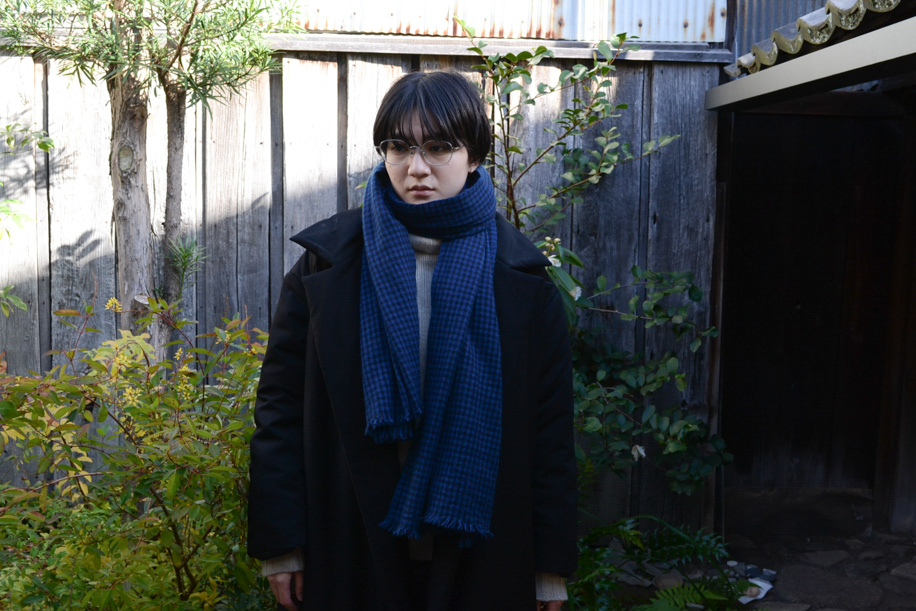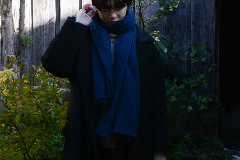 巾広で広げると肩に掛けられるサイズ。そして折って巻けばコンパクトになり、首回りはもたつかず、すっきりと収まり良く巻けるストール。このサイズでも軽く、ボリュームも出すぎずにスッキリまとまるのはカシミヤならでは。カシミヤの糸は超極細の単糸をたっぷりと使用。見た目のボリューム以上に薄手で軽くて柔らかなのはそのためです。