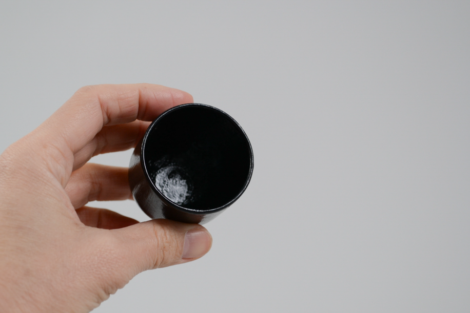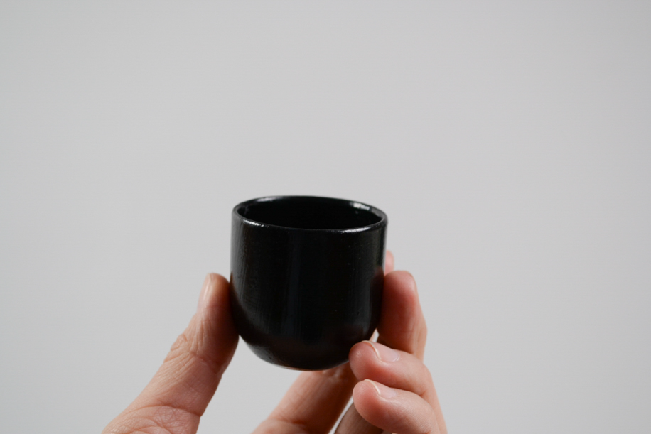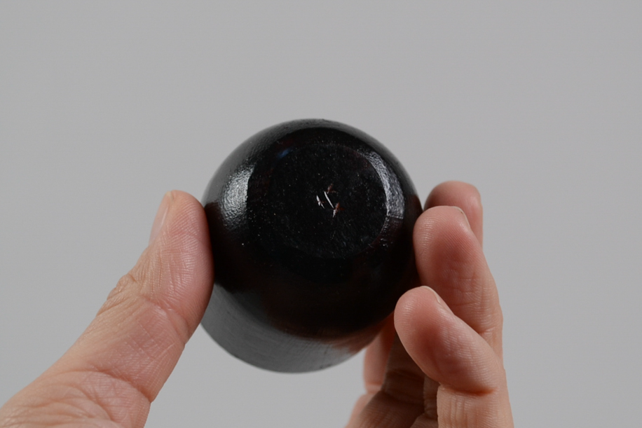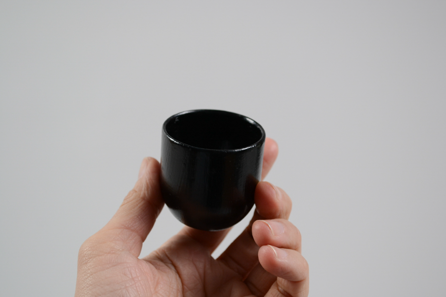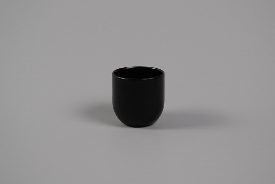 小さな錠剤、カプセルのようなかたちをしていることからカプセル杯と名付けられました。クイッと飲める形状は和でもなく洋でもなく、意外とどこにいても馴染みます。木目を隠すように漆を塗り重ねているからか、プラスチック的に塗装されたようなテクスチャーともマッチしています。少し傾けてもすぐに起き上がりこぼし的に立ち上がるのもチャームポイント。